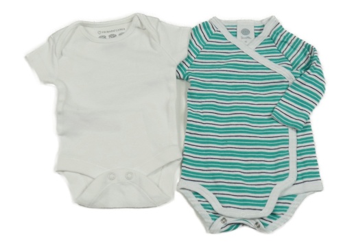 2x Biele + zelené pruhované body