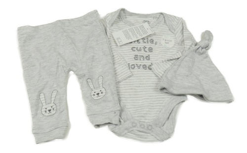 • Nové - 3 set - sivé tepláky s králíky + sivé pruhované body s nápisem + sivá čapica F&F