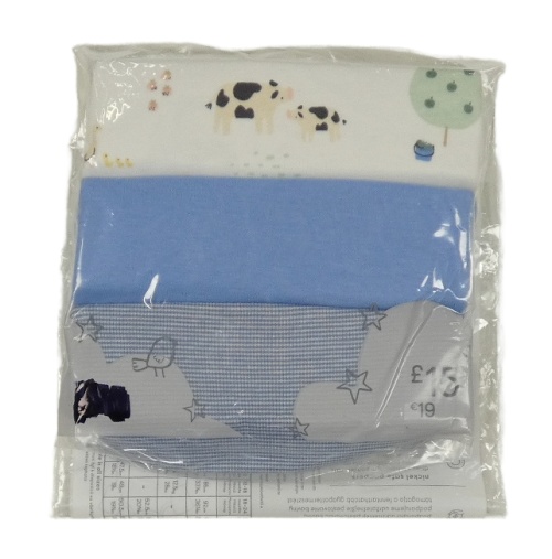 Nové - 3x - Modré + šedé s mráčky + biele body so zvieratkami F&F
