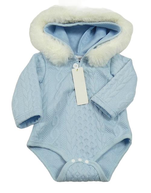 Nové - Svetlomodré vzorované body s kapucňou s kožešinou Shein