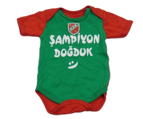 Tmavozeleno-červené body s nápismi a smajlíkom a erbem