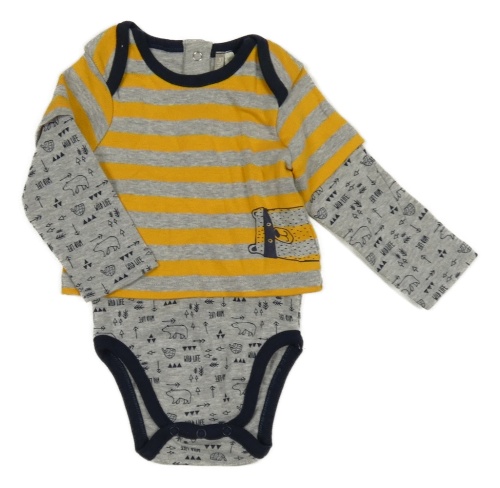 Sivo-okrové pruhvoané body s našitým tričkem a medvěďom orchestra