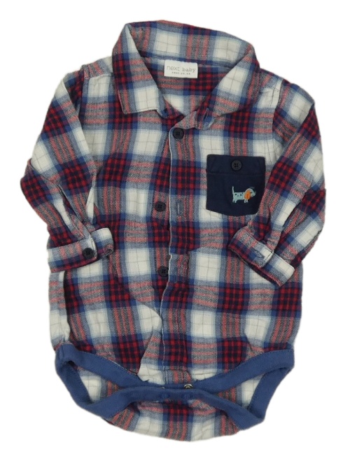 • Bielo-tmavomodro-červeno-svetlomodré kockované vzorované košeľové body s vreckom s psíkom Next