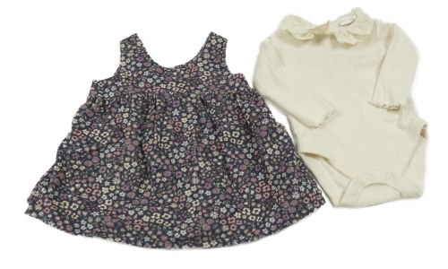 • 2set - Béžové rebrované body s golierikom s madeirou + tmavomodré kvetované menšestrové šaty F&F
