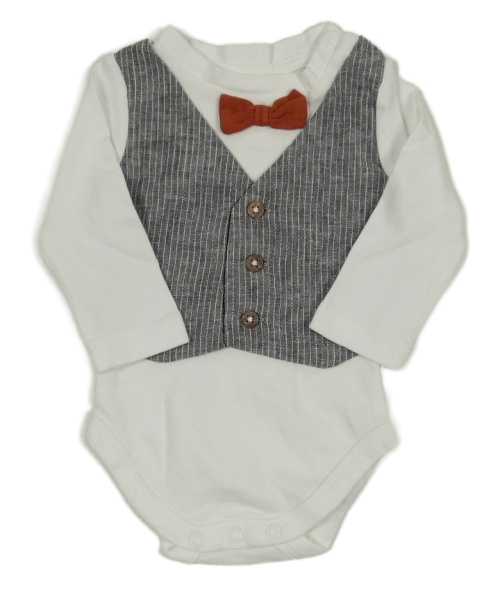 Biele body s našitou šedou vestou a motýlkom C&A