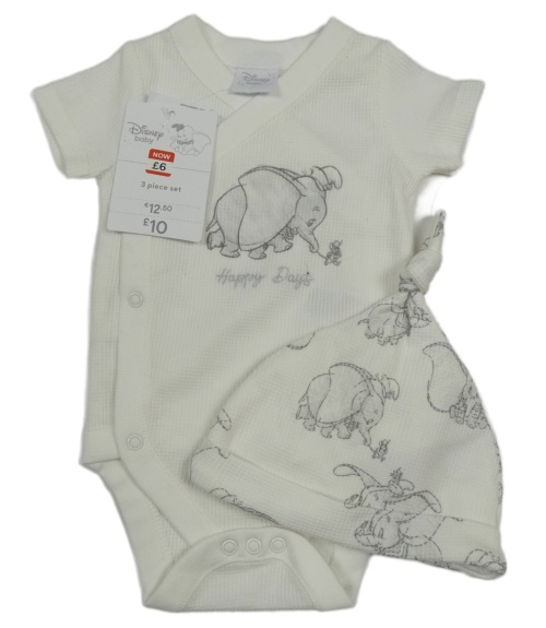 Nové 2 set - biele rebrované zavinovací body s Dumbem + čapica Disney