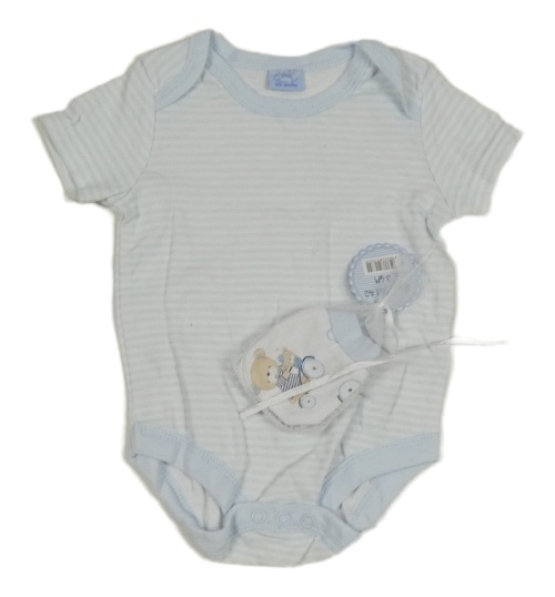 Nové - Světlemodro-bílé pruhované body + bílé rukavice s medvedíkmi