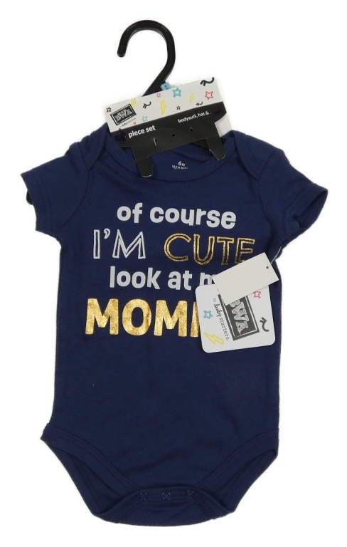 Nové - 2set- tmavomodré body s nápisem+ čapica