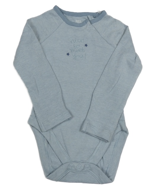 Modro-biele pruhované body s nápismi a hviezdičkami F&F