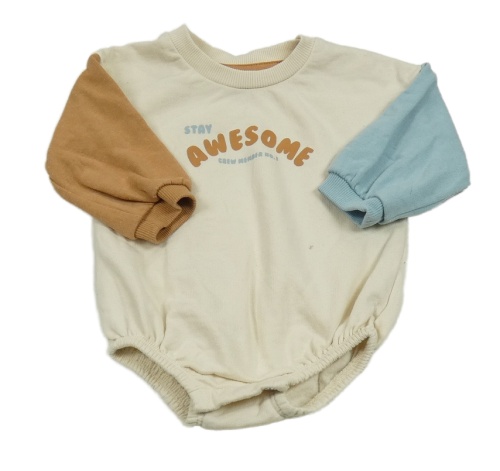 Béžovo-modro-hnedé teplákové body s nápisom