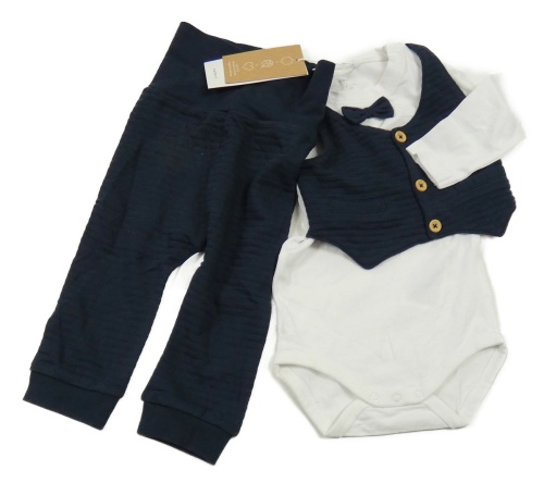 Nové - 2set - Bielo-tmavomodré body s našitou vestou + rebrované tepláky Name it