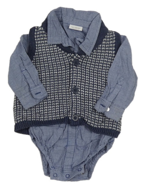 • 2set - Modro-biele kockované košeľové body + tmavomodro-sivá vzorovaná prepínaci svetrová vesta Next