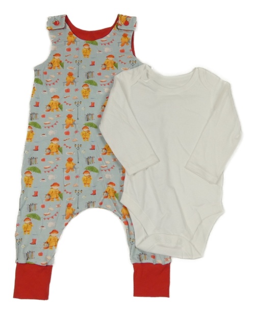 2set - Biele body + světlemodro-červené na traké tepláky s obrázkami