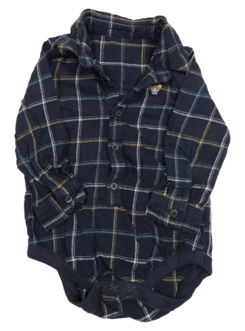 Tmavomodro-béžovo-biele kockované košeľové body s medvěďom George