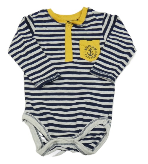 Tmavomodro-sivo-horčicové pruhované body s kotvou