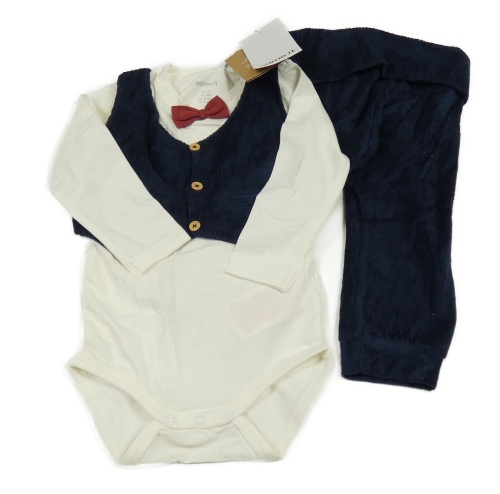 Nové - 2set - Smotanové body s vestou + motýlkem + zamatové rebrované nohavice Name it