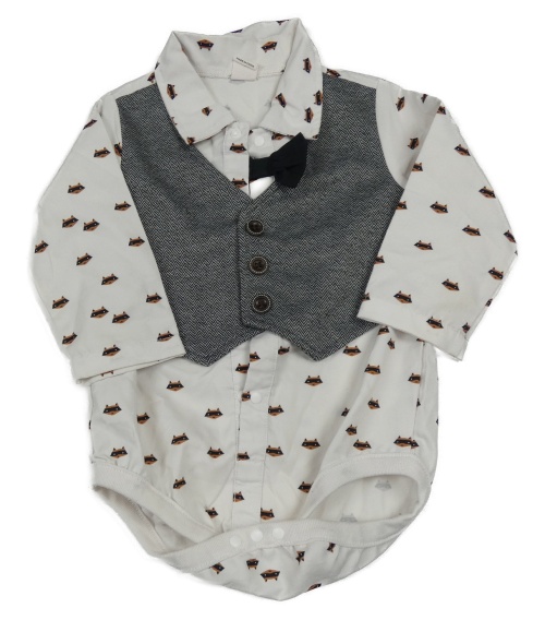 Biele košeľové body s mývaly, vestou a motýlkom Shein