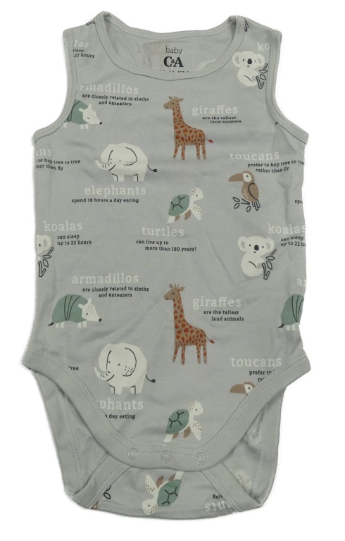 Svetlosivé tílkové body so zvieratkami a nápismi C&A