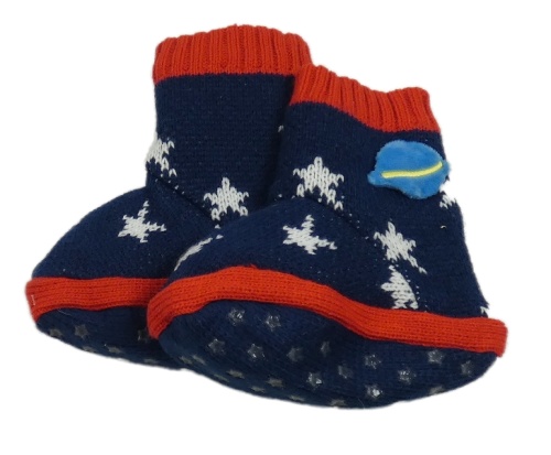 Tmavomodré pletené zateplené papučky s hvězdami vel.25