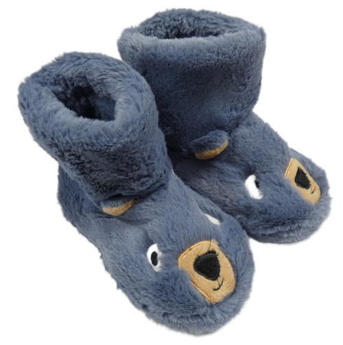 Modrošedé kožušinové zateplené papučky s medvedíkom M&S vel. 25,5