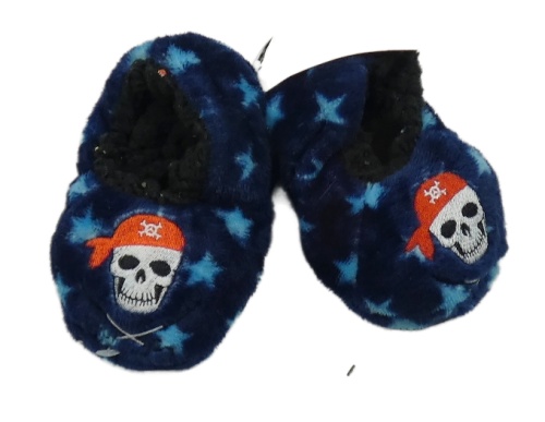 Nové - Tmavomodré plyšové papučky s lebkami a hvězdami vel. 27/28