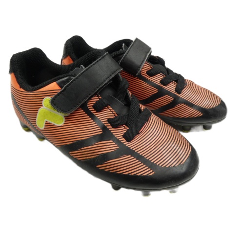 Černo-neonově korálové pruhované kopačky Fila vel.29