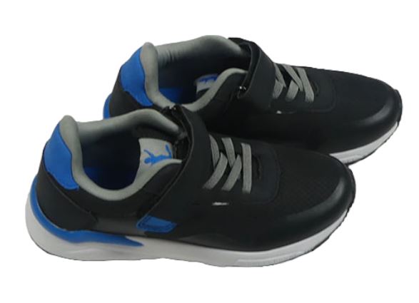 Černo-modro-šedo-bílé textilno/koženkové botasky L&D vel. 33