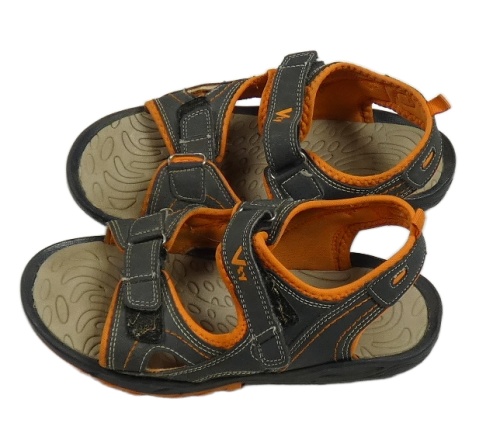 Tmavomodro/šedo-oranžové koženkovo/textilní outdoorové sandály Vty vel. 35
