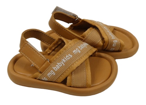 Nové - hnědé koženkovo/textilní sandály s nápisom MG BABY vel. 22