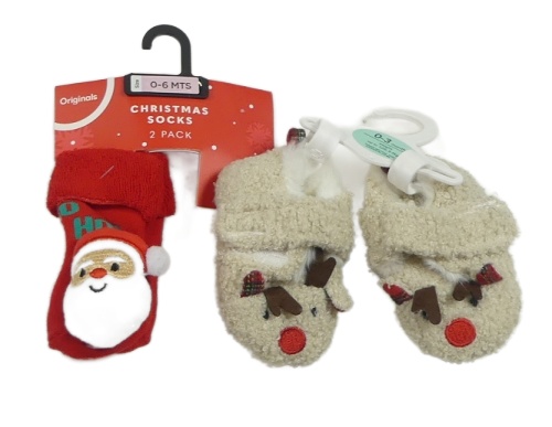 Nové - 2set - Béžové huňaté zateplené cápačky so sobem vel. 16 + červené ponožky so Santou