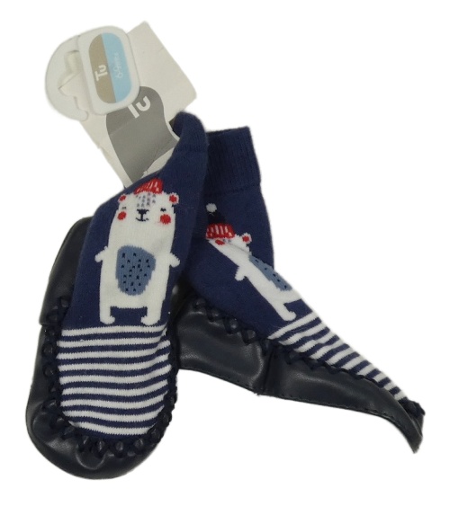 Nové - tmavomodré koženkovo/semišové cápačky s ponožkou s medvedíkom Tu vel. 17