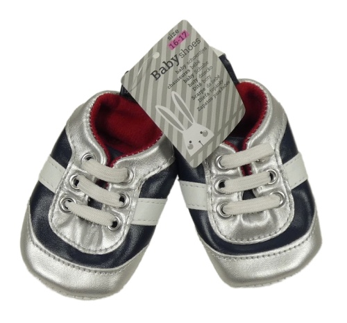 Nové - Stříbrno-tmavomodré koženkové capáčky vel. 17