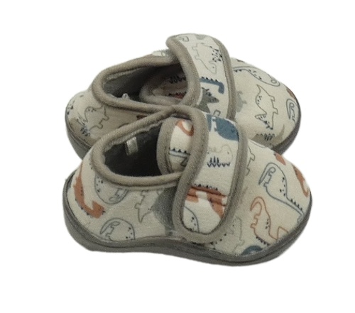 Nové - smetanovo-sivé zamatové papučky s dinosaurami Dunnes vel. 19