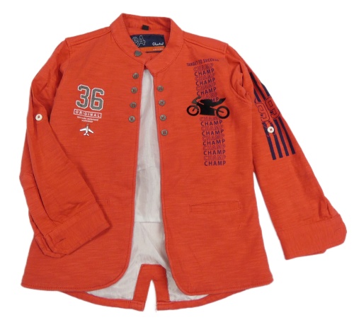 Červený bavlněný kabátek s motorkou a číslami Charles