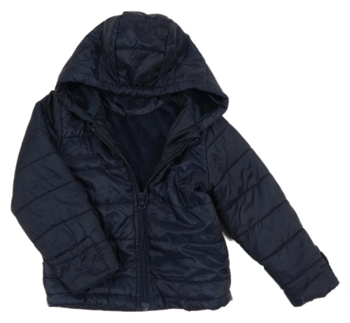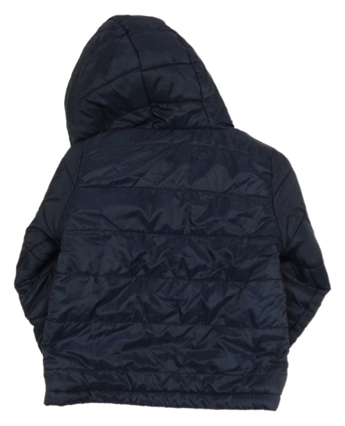 Tmavomodrá prešívaná šušťáková zateplená bunda s kapucňou