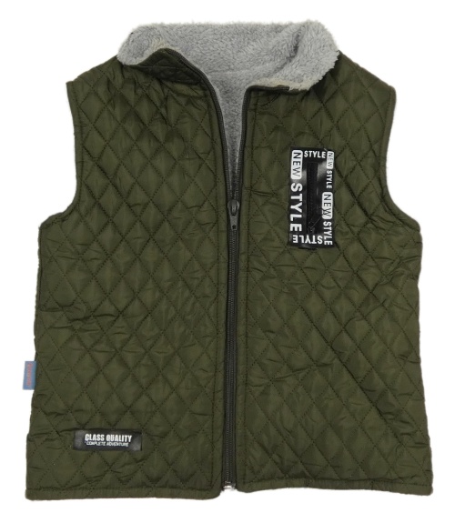 Olivová šušťáková prešívaná zateplená vesta s nápisom