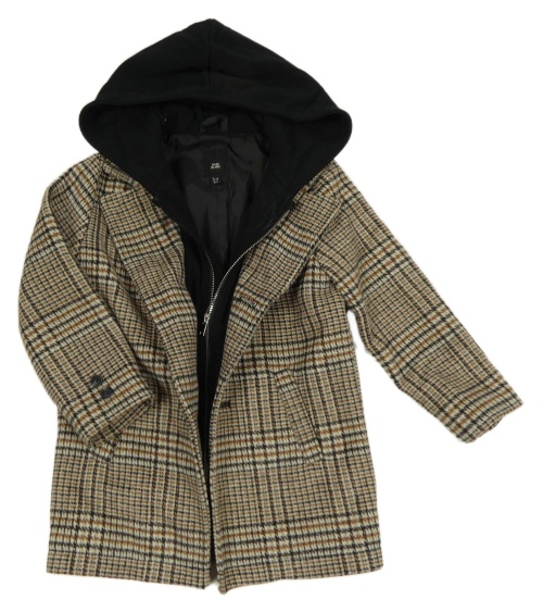 Béžovo-smetanovo-čierny kockovaný flaušový kabát s kapucňou River Island