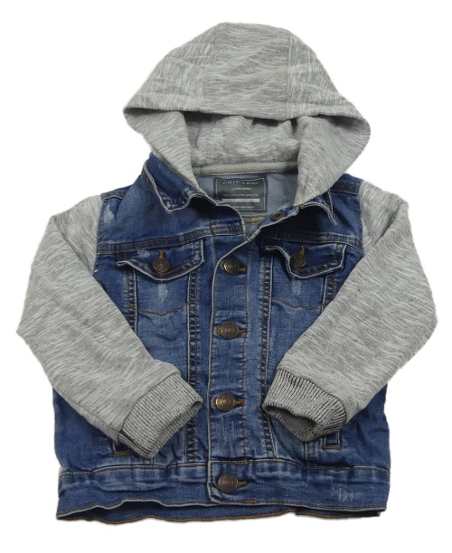 Modrá rifľová bunda s mikinovymi rukávy a kapucňou Primark