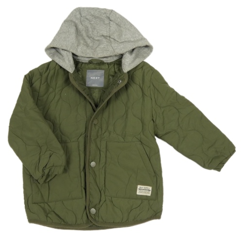 Tmavomodrá šušťáková prešívaná zateplená bunda s teplákovou kapucňou Next