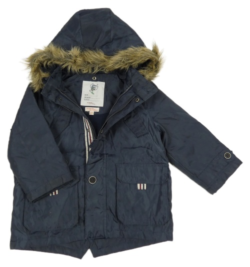 Tmavomodrá šušťáková zateplená parka s kapucňou s kožešinou DU PareiL