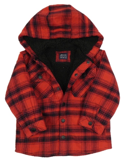 Červeno-čierna kockovaná zateplená košeľová bunda s kapucňou Next