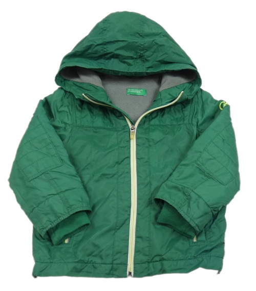 Zelená šušťáková zateplená bunda s kapucňou Benetton