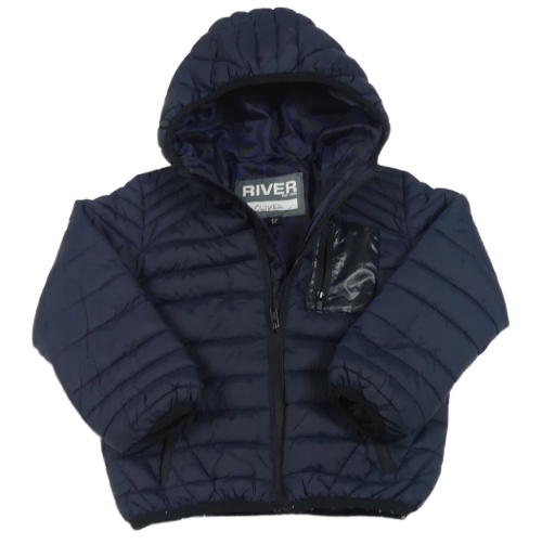 Tmavomodrá prešívaná šušťáková zateplená bunda s kapucňou RIVER ISLAND