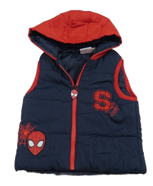 Tmavomodro-červená šušťáková zateplená vesta so Spidermanem a kapucňou Marvel