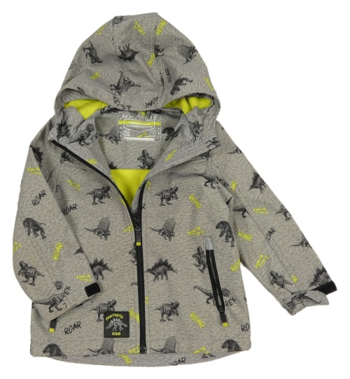 Sivá melírovaná softshellová bunda s dinosaurami a kapucňou C&A