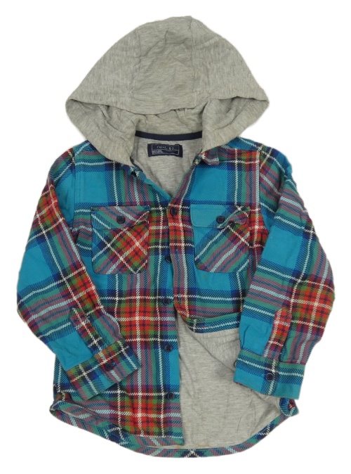 Azurovo-kockovaná podšitá košeľová bunda s kapucňou Next