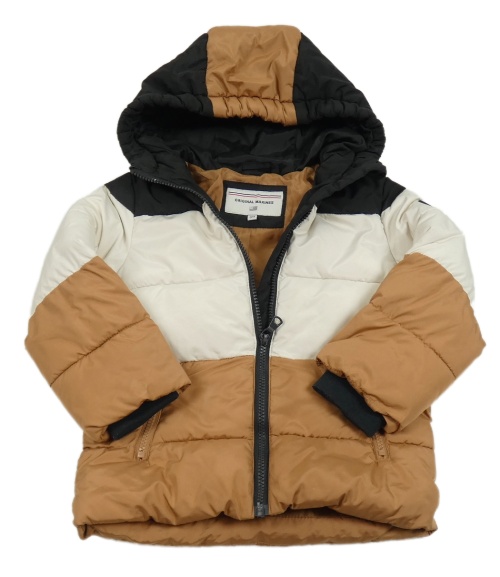 Čierno-bielo-hnedá šušťáková zimná bunda s kapucňou