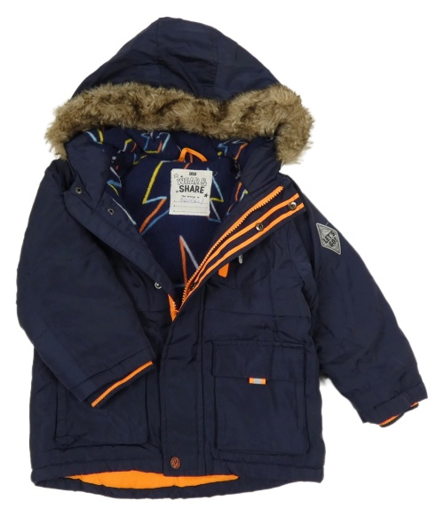 Tmavomodrá šušťáková zimná bunda s neónovým zipsom a kapucňou F&F