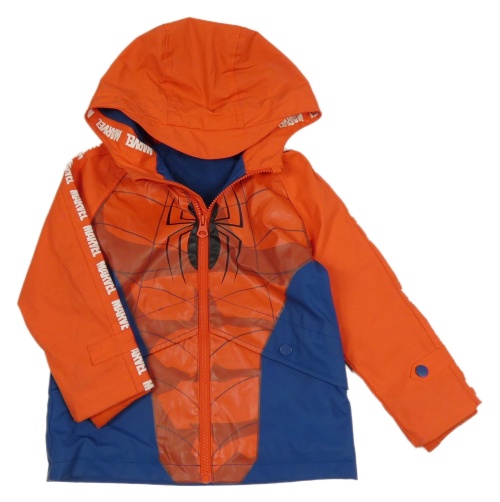 Červeno-tmavomodrá nepromokavá jesenná bunda so Spider-manem a kapucňou Marvel