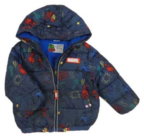 • Tmavomodrá melírovaná prešívaná šušťáková zimná bunda s Avengers a kapucňou MARVEL